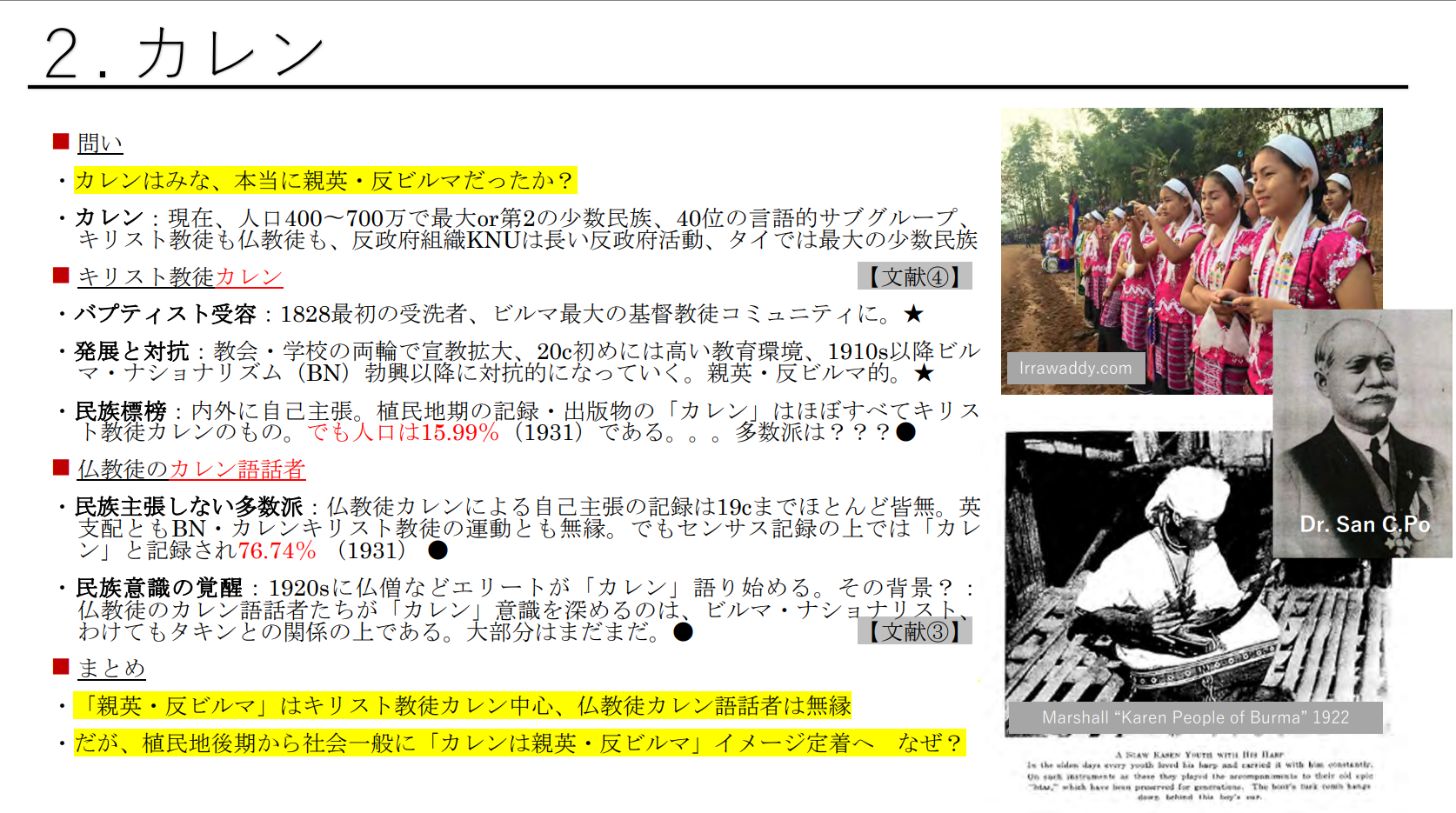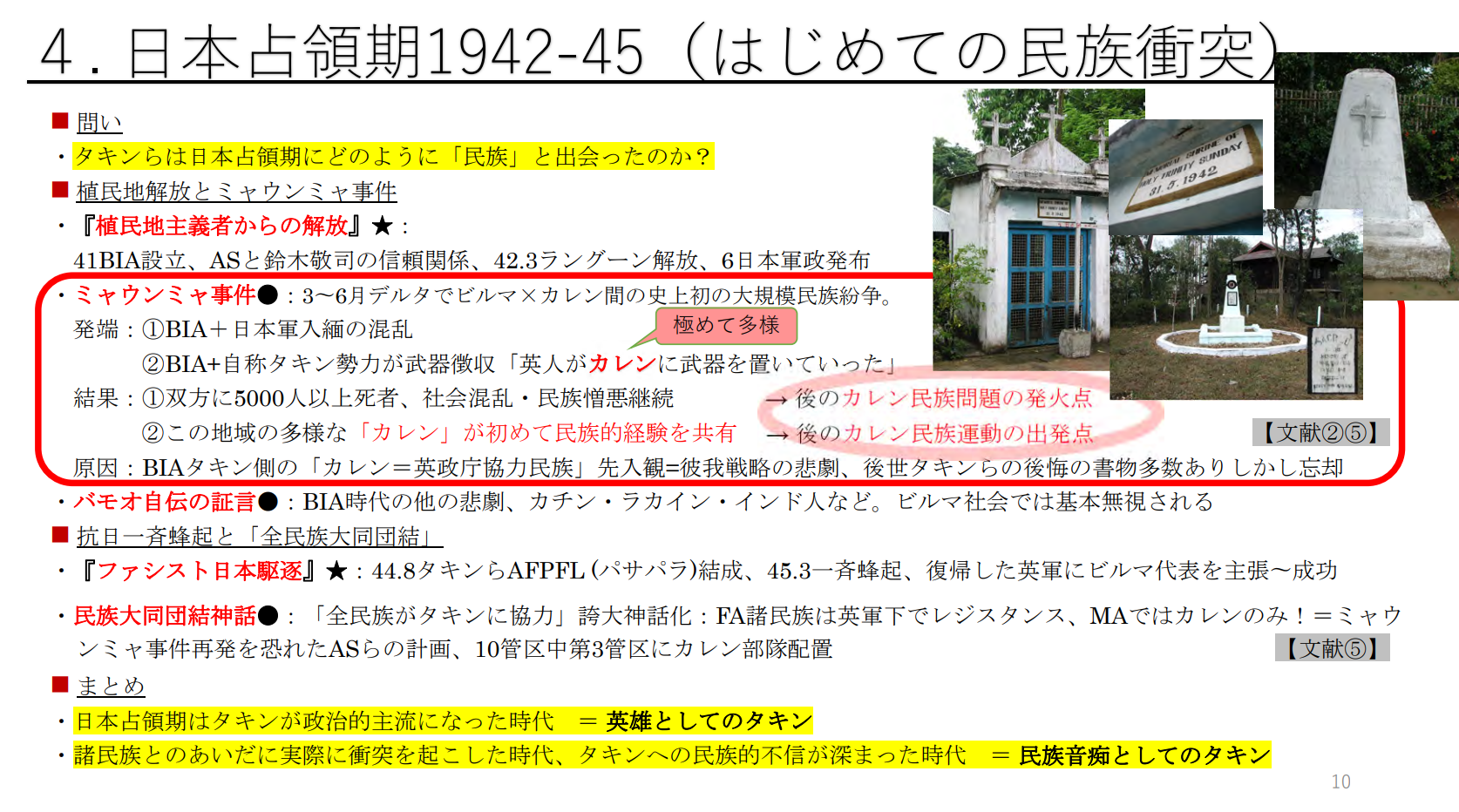 FAは山岳地域で、この時代も通信や行き来で困難がありましたので、互いの連携は英軍の指導を介したもの以外はほとんどないでしょう。個別の各時期のレジスタンスはいろいろと証言が残っており、カレン側ではとくにGrandfather Long Legという名で親しまれているSeagrimの話が有名です。FAのもろもろ動向は44年8月〜45年3月のアウンサンたちの地下抗日活動と接点を持ちませんでした。