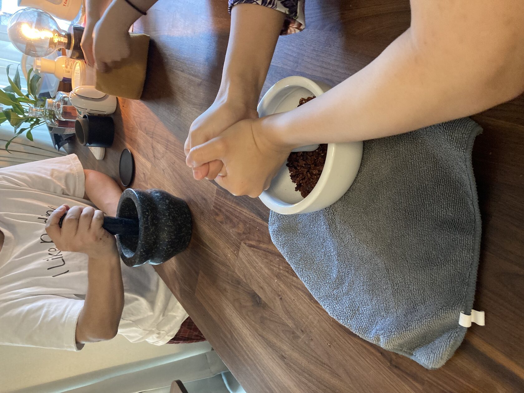厚い皮から取り出したパルプとカカオ豆は木箱に入れてバナナの葉をかぶせて発酵させるそうです。発酵については未解明なことも多いけれど、バナナの葉についている微生物などを活かしていて、期間は1週間くらいで気温や豆やパルプの量により調整するそうです。最初の発酵はパルプに含まれる糖分がアルコールになる発酵で、その時に少しずつカカオの香りがしてくるそうです。その後2~3日経つとかき混ぜて空気を含ませて、アルコールになったものを酢酸に変えていく発酵を促して、ヨーグルトの酸化し始めた香りがしたりするそうです。その段階になってくると白いものが少しずつ取れて茶色い状態になってくるそうです。
