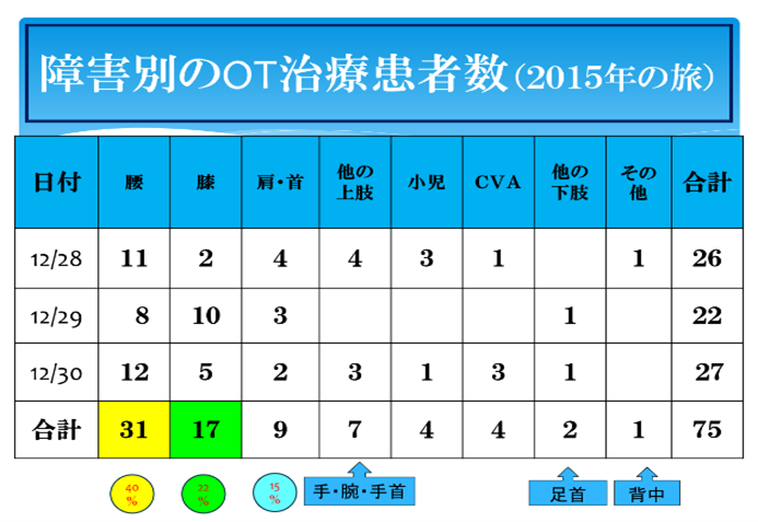 勿論、NRHでもYGHでも医師を中心にして、この種の企画はあったものの、それらはいわば「官製」の、予算が伴う「行事」であり、年間1回あるかないか程度であった。その点ではYOHのモバイル・クリニックは特異、かつ重要なエポックとして、ミャンマーのリハビリ医療の歴史に名を留めるだろう。なおPTに関しては、YOHだけでなく他の国立や民間のPTも毎回多数参加した。