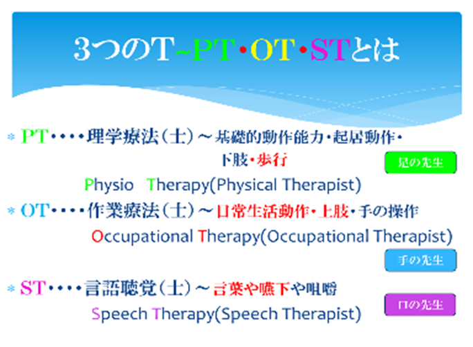 ③PTは入院患者の家族に訓練の仕方を指導し、後は家族が中心になり患者のリハビリを専らこなしている場合が多い。