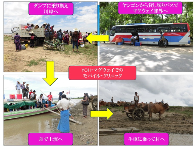 民主政権誕生と軌を一にして、ヤンゴン整形外科病院YOH(Yangon Orthopedic Hospital)の有志を中心として、2016年頃から、乾季の期間、頻繁にヤンゴン郊外ばかりでなく、遠くエーヤワディー管区、ザがイン管区、モン州など遠方にバス1台を仕立てて、医師・PT・薬剤師・看護師など医療職のほか、一般の事務職有志など、多くの若者(仏教徒を中心に)が自分たちでお金を出し合って、2泊3日、近場は日帰りでモバイル・クリニックを実施し、それはコロナが広まる直前の2019年まで継続されていた。 YMCAのモバイル・クリニックがカレン族のクリスチャンの村を中心に組まれたのに対して、YOHのモバイル・クリニックは仏教徒の僧院を中心に行われた。国民の90%は仏教徒であり、YOHの有志も多くは仏教徒であったから、そのつながりやネットワークで、地方の依頼やニーズを検討し、毎回その需要に応えて実施された。