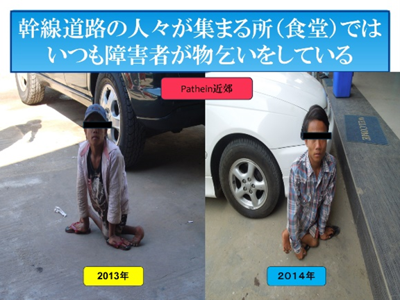 ⑥それ故、退院即リハビリの終了を意味し、あとはヤンゴンとマンダレーの大都市の場合、裕福な家庭はPTによる有料訪問リハビリを受けることも可能であるが、経済的余裕のない家庭は全くリハビリの恩恵にあずかることは不可能となる。特に地方の田舎は交通手段が確保されにくく、また貧しい人々が多いため、住まいで寝たきりになる障害者が潜在的に少なくない。都市部でも古い集合住宅ではエレベーター等がなく、2階以上では外出困難となり寝たきりになるリスクも大きい。