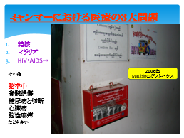 大前提としてのリハビリテーションについての説明は以上のスライドに加えてミャンマーにおける実際の写真を用いて行われた。