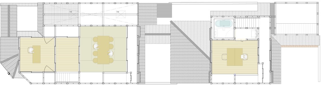 「楽平家サロン」では、ミニライブラリーやイベントスペース、ギャラリー、そして、カフェやレンタルスペースなど、部屋ごとに改装し多目的な用途が実現できるようにした。構造は変えられないので、今後、それぞれの部屋にどういった機能をどう付加し、それぞれの用途が相乗効果をもたらすようにしていくかなどの運営面での工夫が必要となると思われる。もちろん町家に残された床の間や建具、欄間などのしつらえや意匠はできるだけ残して活かすようにしている。