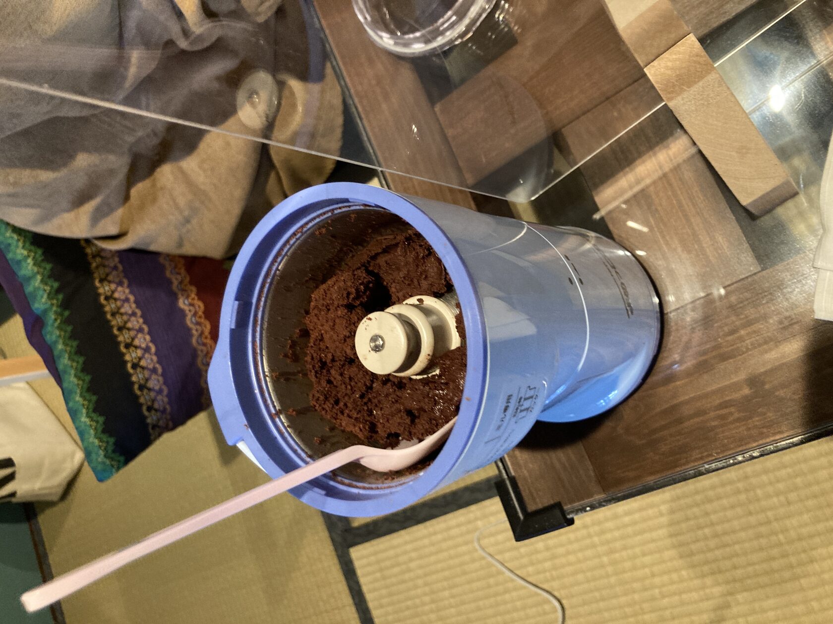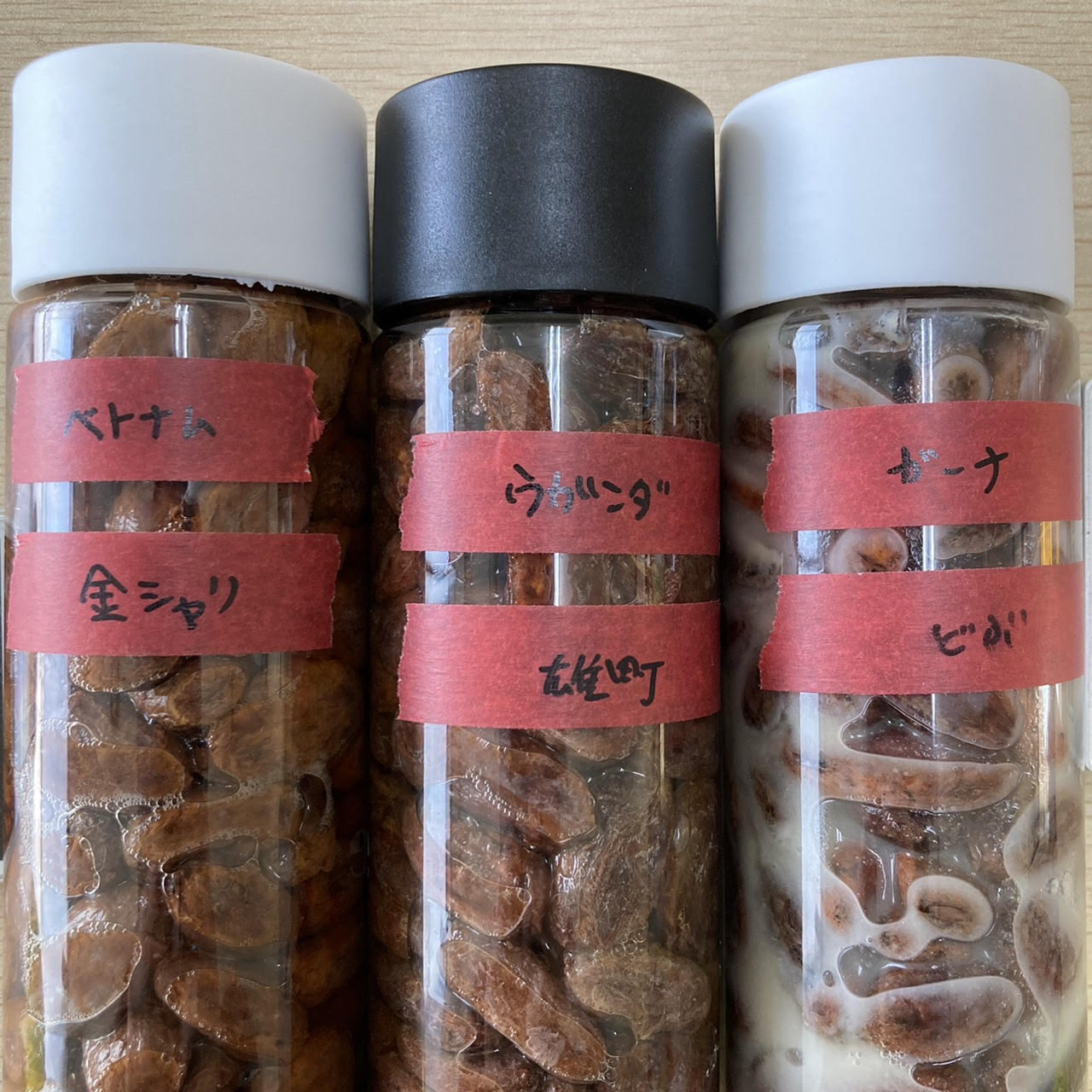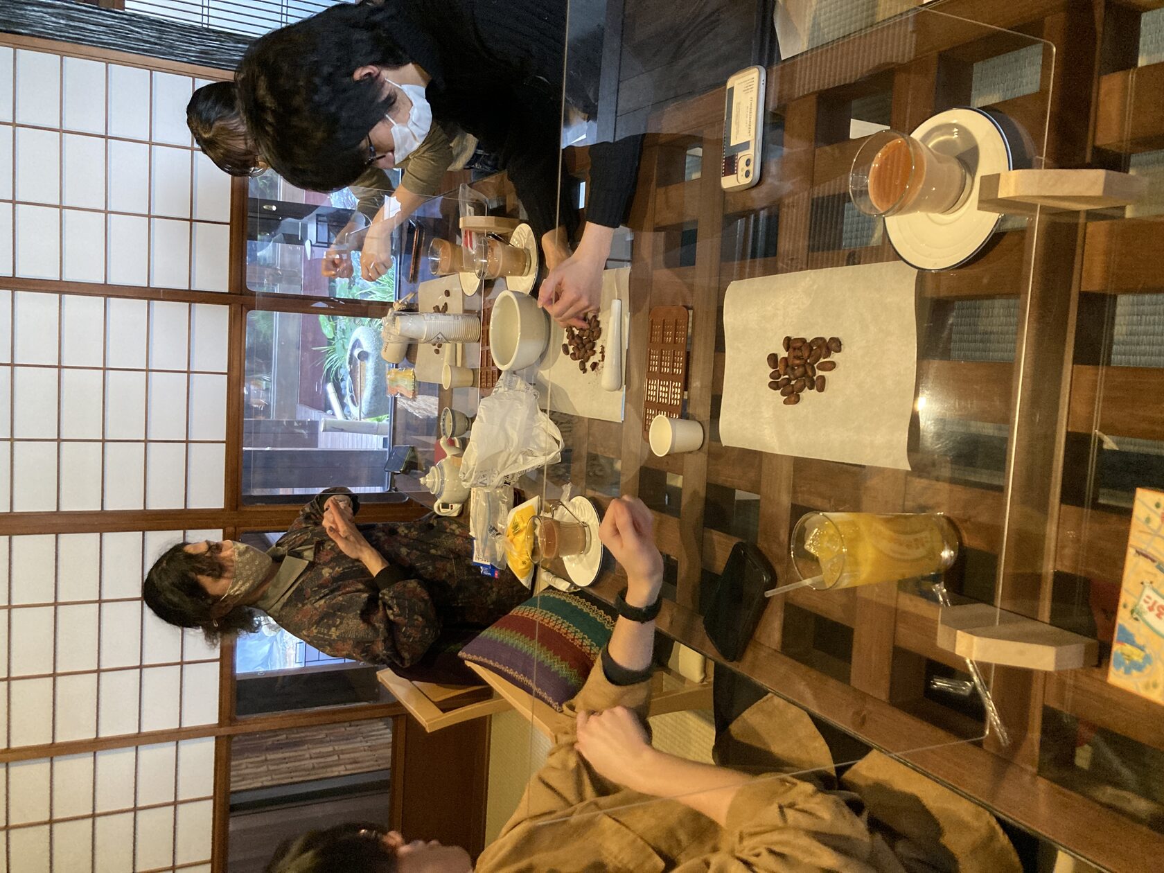当日持参のカカオ豆は既に3週間日本酒に浸してあり、乾燥、焙煎を施してありました。カカオ豆の香りの雰囲気の似ているお酒を合わされたとのことでした。